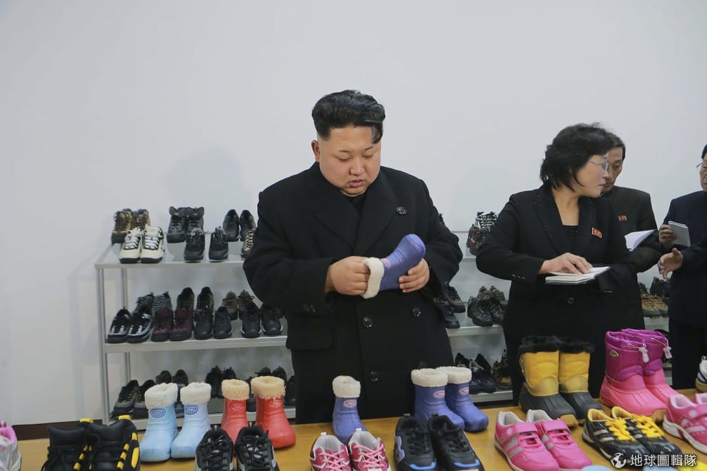 照片中是北韓領導人金正恩,《朝鮮中央通訊社》提供的照片中,可見到他正在參觀一間製鞋工廠。