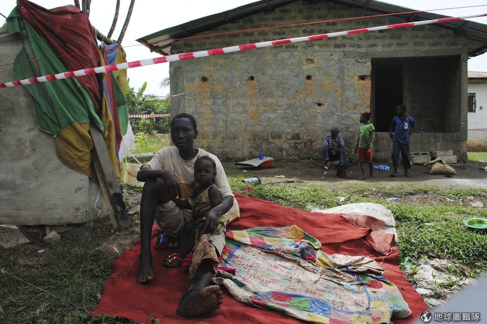照片中的佛羅莫(James Flomo)抱著孩子看鏡頭,他的太太因染上伊波拉病毒,已在3天前過世,現在他也是疑似染病的追蹤病患之一。