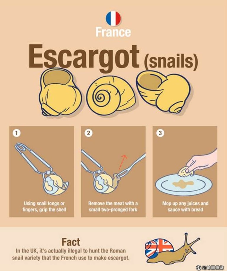 小秘密:事實上在英國捕羅馬蝸牛(也就是法國料理會吃到的蝸牛)是犯法的。