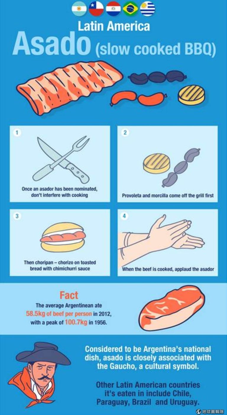 小秘密:2012年阿根廷人平均一人吃下58.5公斤的牛肉,1956年更誇張,每人吃下100.7公斤的牛肉。阿根廷烤肉是阿根廷的國菜,和阿根廷的文化象徵高喬人息息相關。