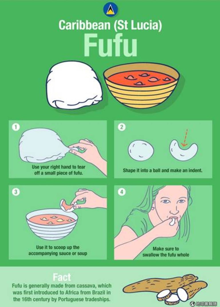 小秘密:Fufu是用樹薯做的。樹薯在16世紀時由葡萄牙商船將他從巴西帶到非洲。