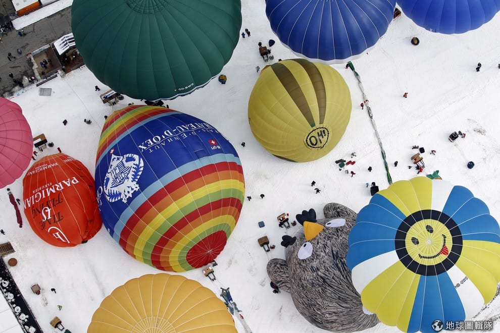 瑞士西部的代堡(Chateau-d'Oex)出現色彩繽紛的熱氣球,當地從25號開始是第37屆國際熱氣球節。