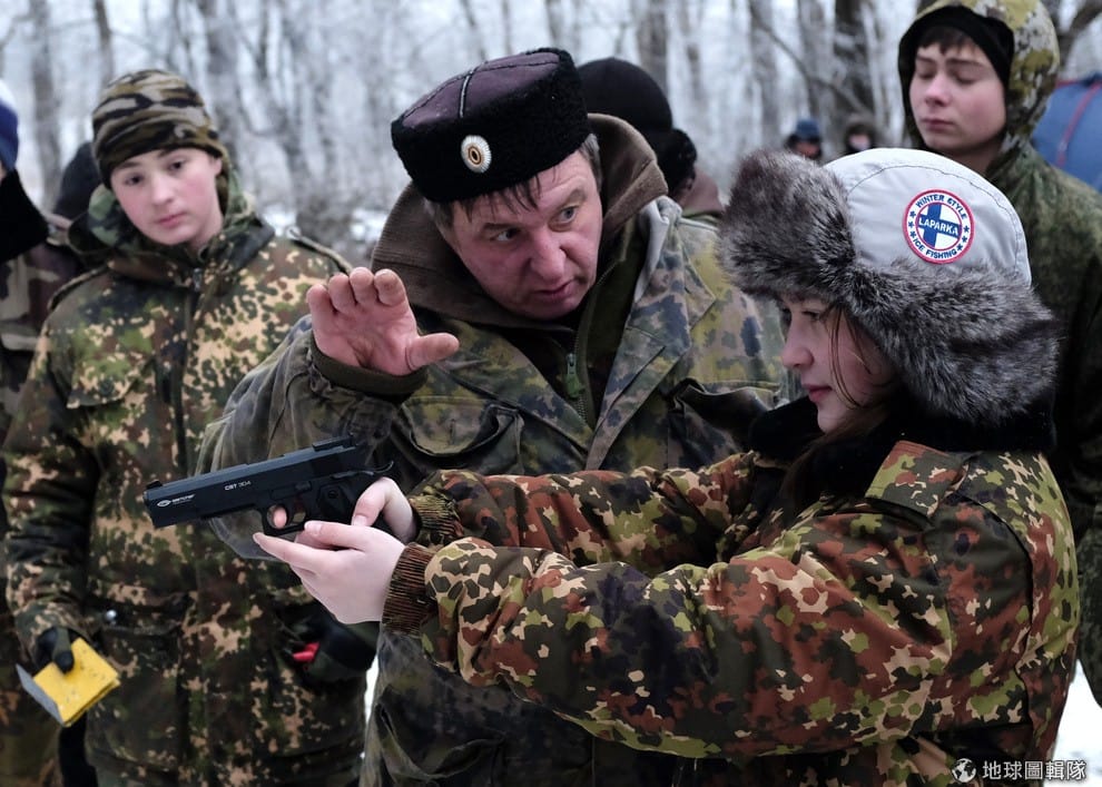 照片中的軍官正在教導小朋友射擊。他們所在的地點是葉爾莫洛夫軍事學校(General Yermolov Cadet School)。