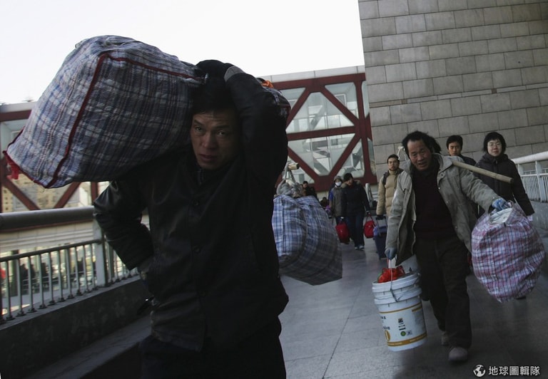 照片中是專為人提行李的搬運人員,年節時期要靠他們來分擔重擔。圖片來源:Kevin Lee/Getty Images
