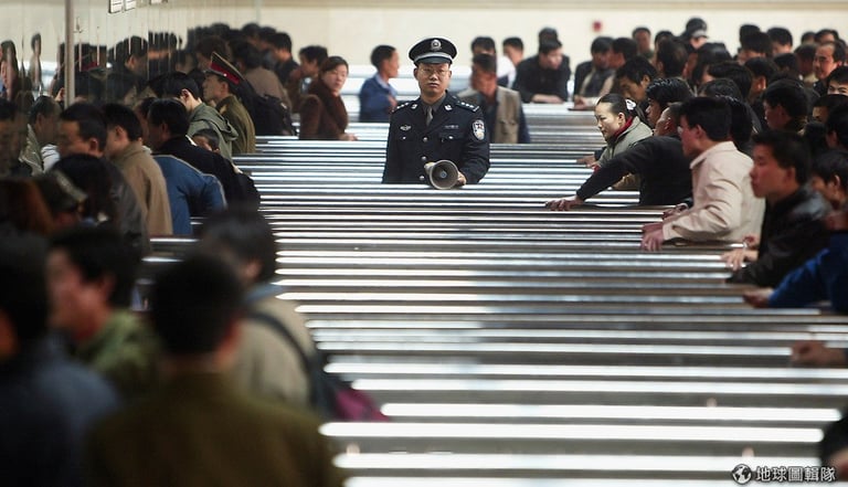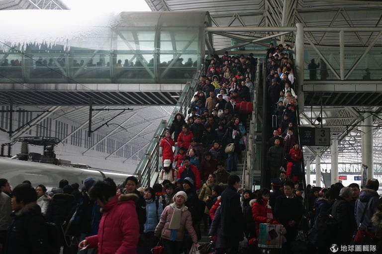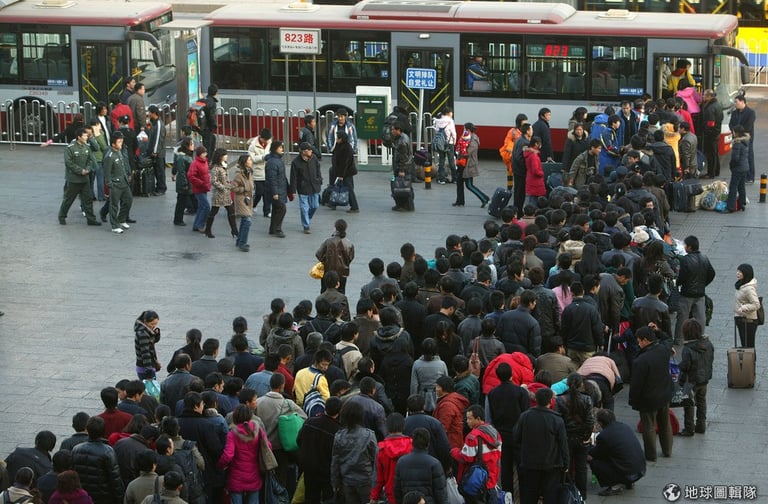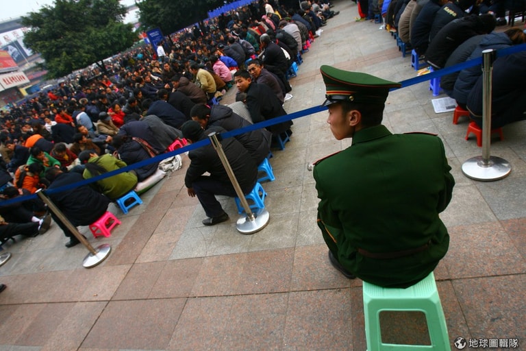 每年農曆新年前後,中國大陸的春運人潮總是讓人咋舌,從地鐵、公車、到機場,全是黑鴉鴉的人龍!圖片來源:China Photos/Getty Images