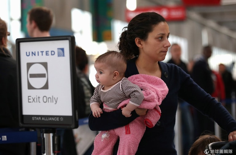 美國的機場在聖誕前夕就進入返鄉人潮的高峰期!這時候帶著小朋友一同返家的爸爸媽媽好辛苦啊!圖片來源:Scott Olson/Getty Images