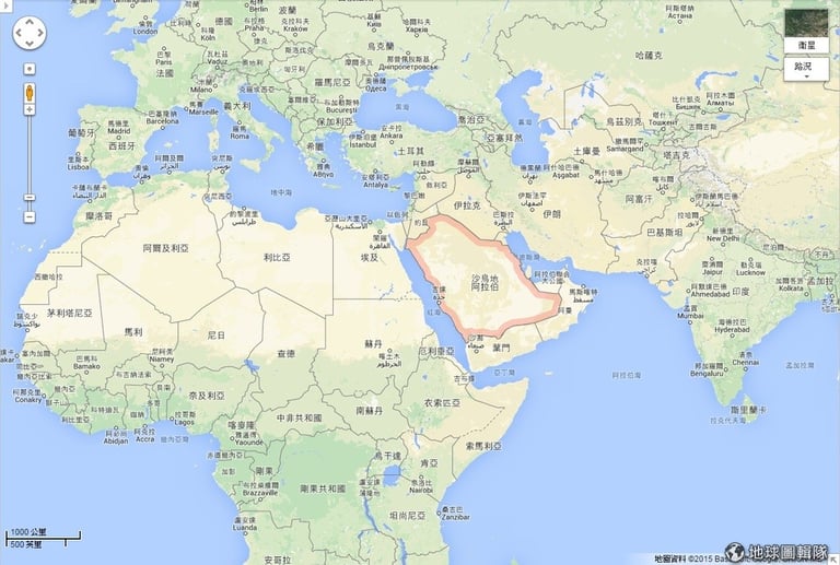 上圖紅色區域是沙烏地安拉伯,中東地區被戰爭和對抗意識分裂,沙烏地阿拉伯是在中東地區裡美國的重要夥伴。