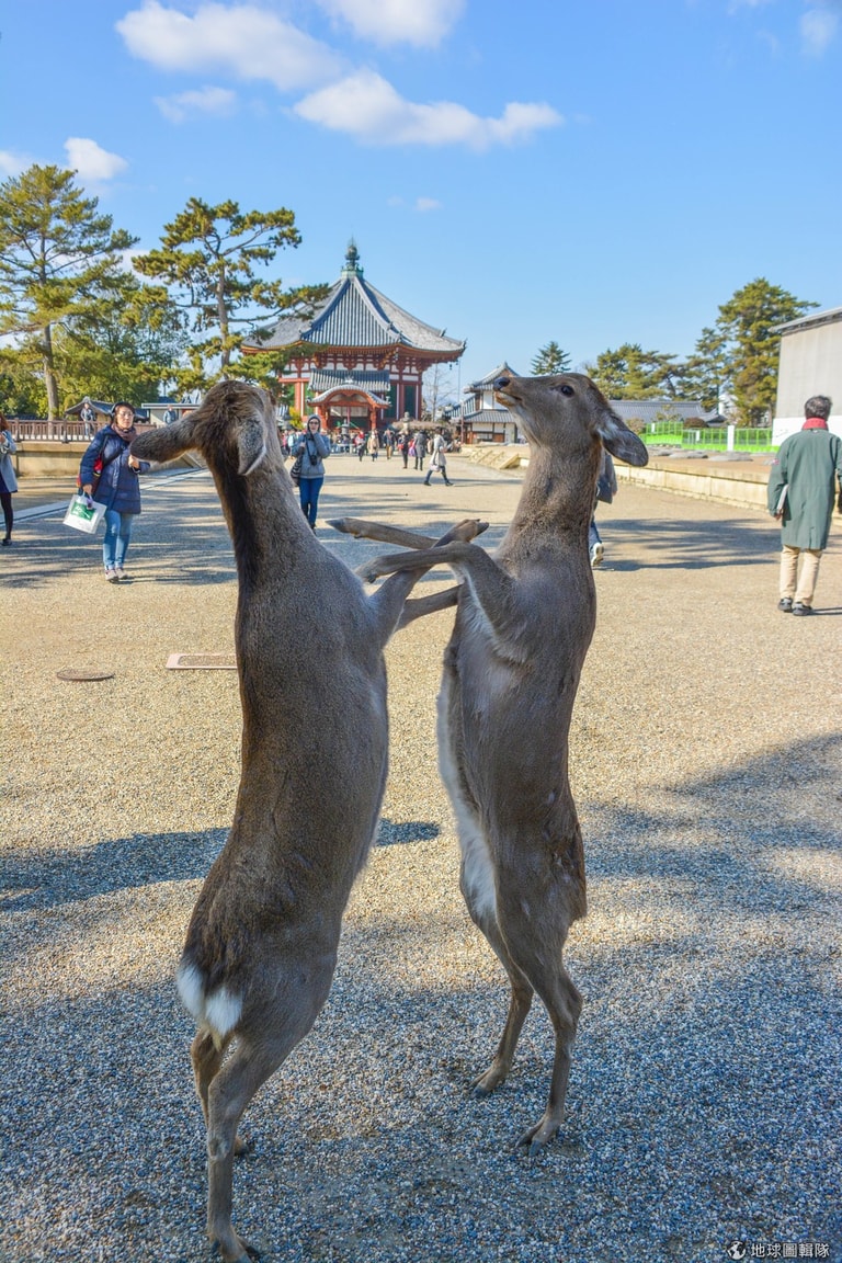 日本政府為了保護鹿兒的安全可說無所不用其極,不僅指定牠們為「天然國寶」,還訂定了一系列規定保護鹿在奈良的安全。包括要是不小心開車撞到鹿可是要上繳罰款給愛鹿協會。而奈良人在駕訓班時也會學習怎樣避開小鹿安全上路。