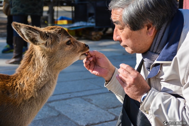 餵鹿可是有秘訣,記得拿著鹿仙貝上上下下地舞動,鹿兒們會有禮貌地向你低頭,希望能嘗到鹿仙貝的好滋味。