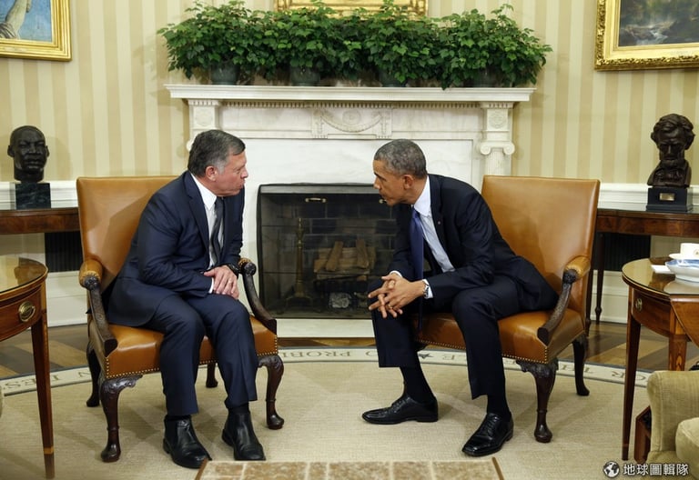 正在出訪美國的約旦國王阿布杜拉(圖左),聽聞消息後隨即取消行程返國。