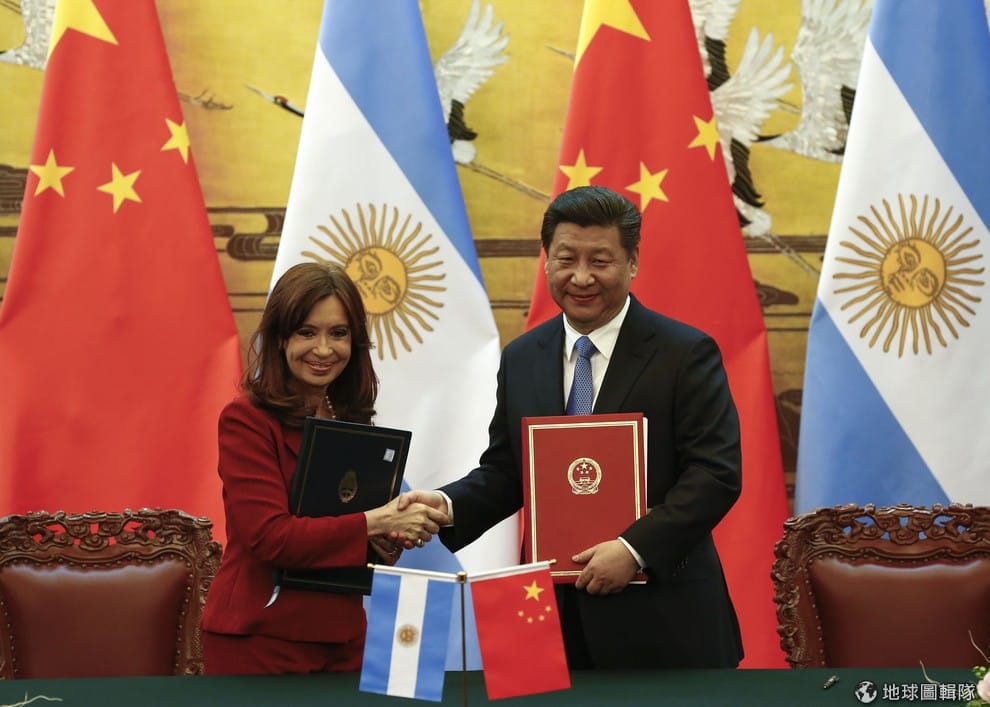 目前阿根廷總統正出訪中國。圖為阿根廷總統克里斯蒂娜與中國領導人習近平。