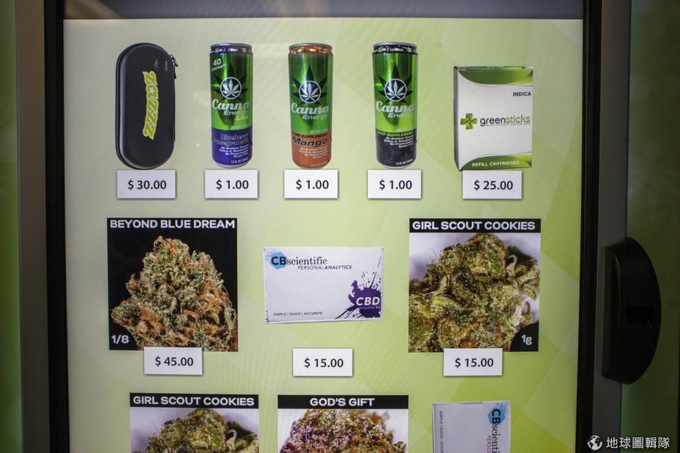 西雅圖的一家大麻藥房裡,可以看到自動販賣機有賣大麻花、大麻油活力飲料等商品。從 3號開始,西雅圖的大麻販賣機正式開賣。西雅圖是全美第一個有大麻販賣機的州,業者希望在未來可以把販賣機推行到美國其他大麻合法的地方。