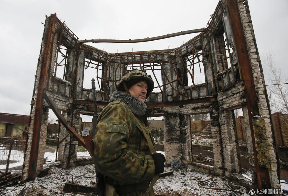 照片中可以看到親俄派民兵的坦克。