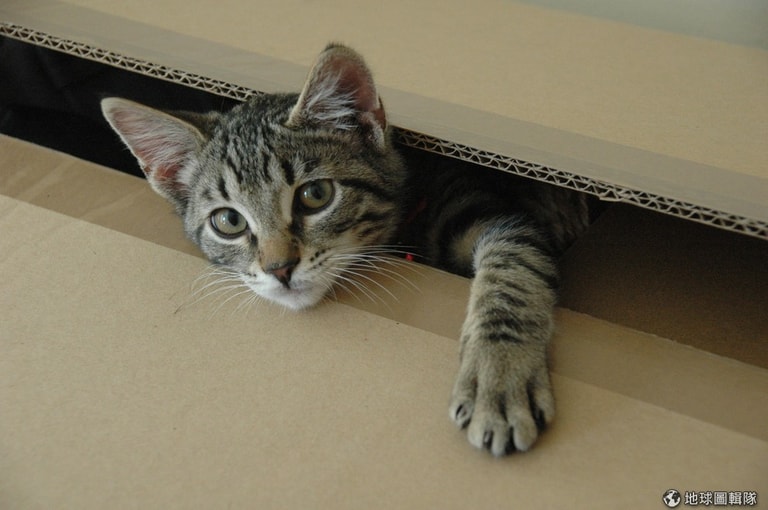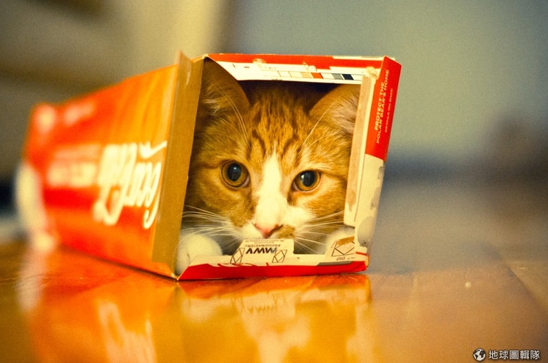 這句話適用於野貓以及你的家貓,如果牠們不能躲到樹上、牠們的窩或洞穴裡的話,鞋盒也許就是可以讓牠們放鬆的地方。