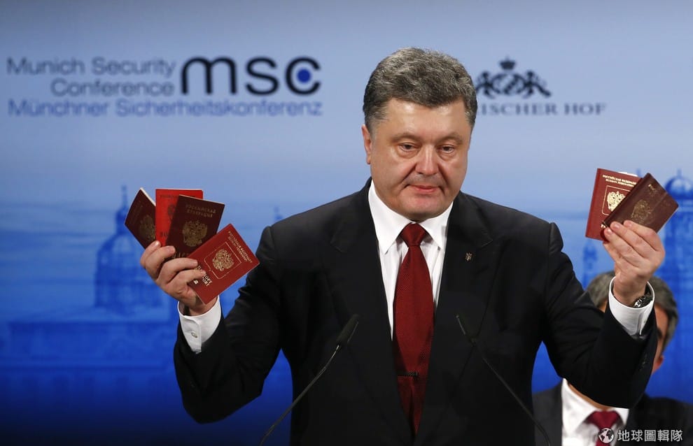 烏克蘭總統波洛申科(Petro Poroshenko)參加第51屆慕尼黑安全會議,他在演講時拿著俄國護照證明俄國軍隊出現在烏克蘭境內。