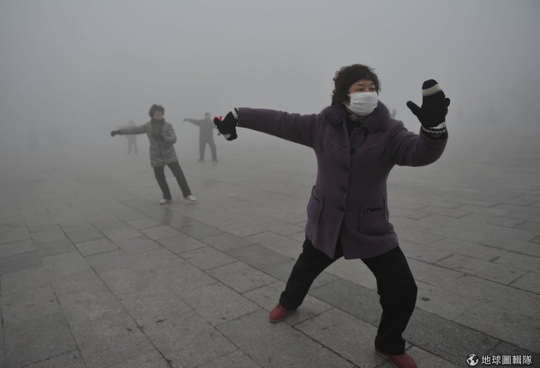 清晨霧氣應該是美景,但這片讓人喘不過氣的煙霧實在讓人不敢恭維!圖片來源:ChinaFotoPress/ChinaFotoPress via Getty Images