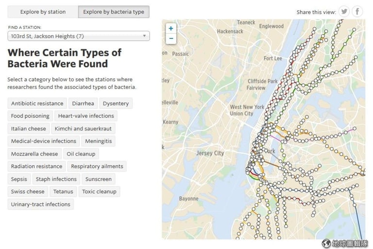 這項研究計畫叫做 “PathoMap",在華爾街期刊的網站上,有一個互動地圖顯示研究的結果。使用者可以尋找特定車站,旁邊會顯示出在這個車站收集的樣本來源、微生物來源的比例、細菌種類與說明;或者可以改用細菌類別為單位搜尋,看看某種特定的細菌存在於哪些車站。