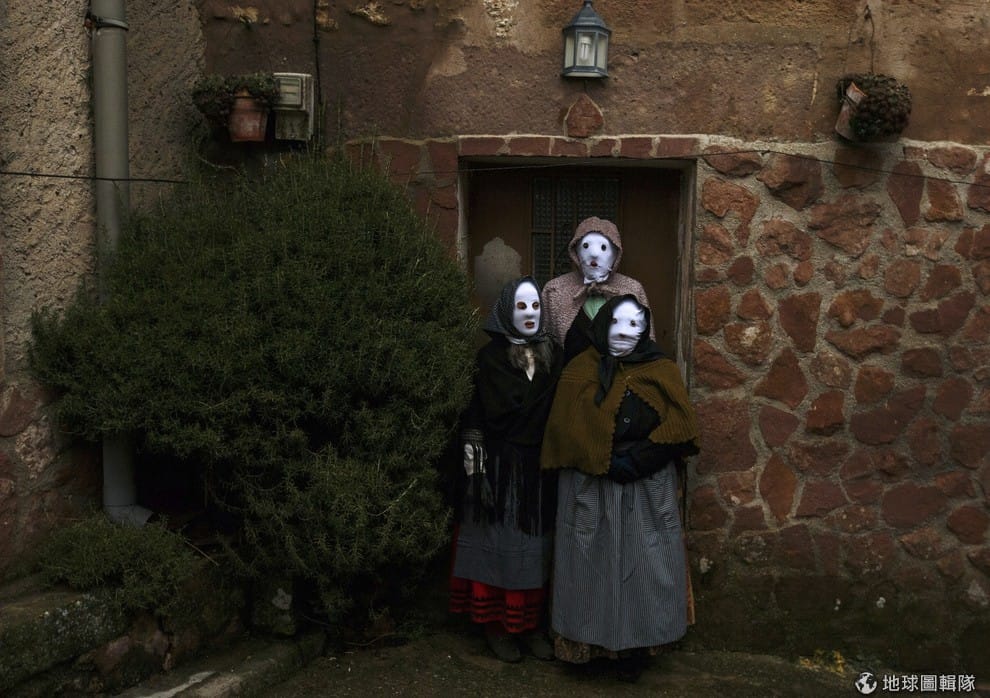 時值西班牙盧松(Luzon)惡魔節,盧森街頭出現許多黑臉牛角扮相的「盧森惡魔」(Diablos de Luzon),這些看來可怕的民眾,運用煤渣和橄欖油混合的顏料抹滿整張臉,還會在腰間繫上牛鈴,接著就會穿梭在村中的巷弄到處「嚇人」,路過的民眾被抓到的話,也會被抹成跟他們一樣的黑臉。如果不想被攻擊的話,扮成「面具人」(Mascaritas)準沒錯。面具人必須穿著傳統女性服飾,用白布罩臉,如圖中三名面具人一般。