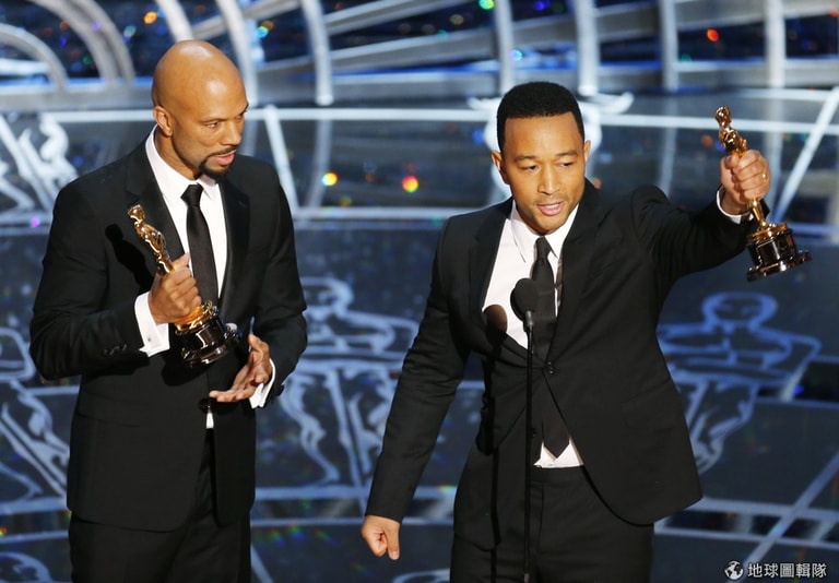 其中,最令人印象深刻地莫過於以《逐夢大道》(Selma)一片中,〈榮耀〉(Glory)一曲獲得最佳原創歌曲的作曲人,黑人約翰‧傳奇(John Legend)和凡夫俗子(Common)的得獎感言。他們提到了民主、人權,還有黑人在美國坐牢的高比率。