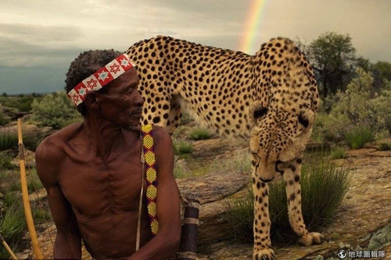 根據英國《每日郵報》報導,來自英國倫敦的攝影師傑克(Jack Somerville),前往非洲納米比亞中部的Naankuse野生動物保護區拍照,觀察人與動物之間的關係。他花了一些時間和當地非洲桑人(San people)搏感情,才有機會拍到獵豹與人和諧共處的特殊畫面。