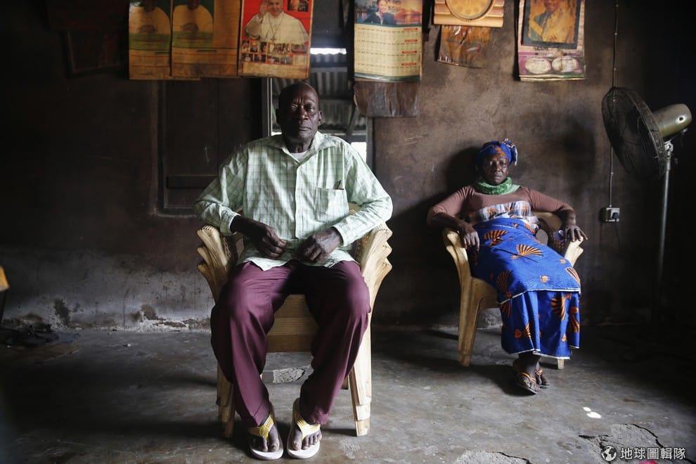 照片中是環保團體的歐古魯(Fedelis Oguru),他和朋友坐在一塊等著要對石油公司殼牌(Shell)起訴。