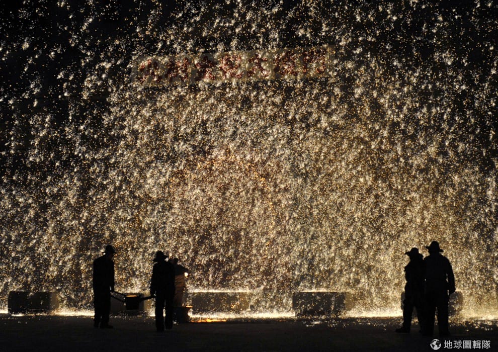 河北省蔚縣的暖泉古鎮,人們正準備替即將到來的元宵節準備火龍。過去 300多年來,暖泉鎮每逢元宵節都會準備舞火龍的傳統活動,居民會拿著攝氏高達 1,300度熾熱鐵塊朝冰冷的水泥牆揮動,製造出火花四濺的景象。