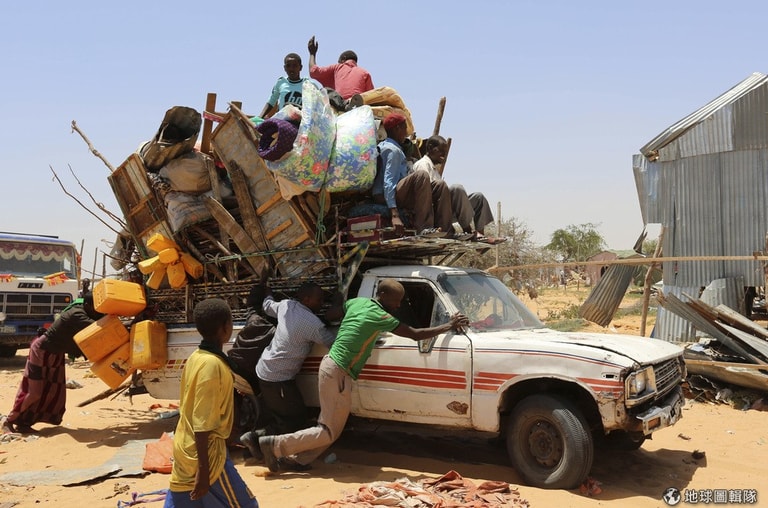 民眾忙著把載滿家當的卡車往前推,他們因為軍方關閉原本居住的營地,只能收拾包袱找其他落腳處。