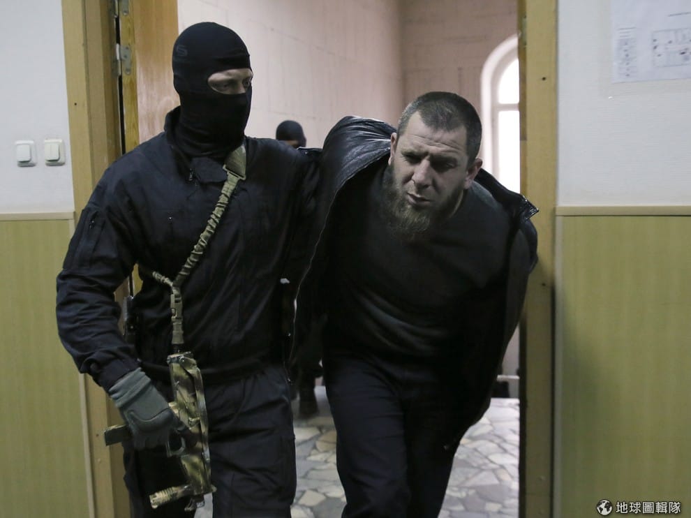 照片中是涉嫌殺害俄國反對派領袖涅姆佐夫(Boris Nemtsov)的嫌犯之一,艾斯克哈諾夫(Tamerlan Eskerkhanov),他和其他另 4名嫌犯在 8號這天被押送至莫斯科的法庭。