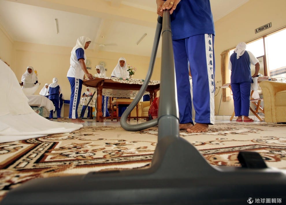 印尼的培訓中心裡,傭人實習生正在接受專業訓練,學習怎麼把家務事做得完美。