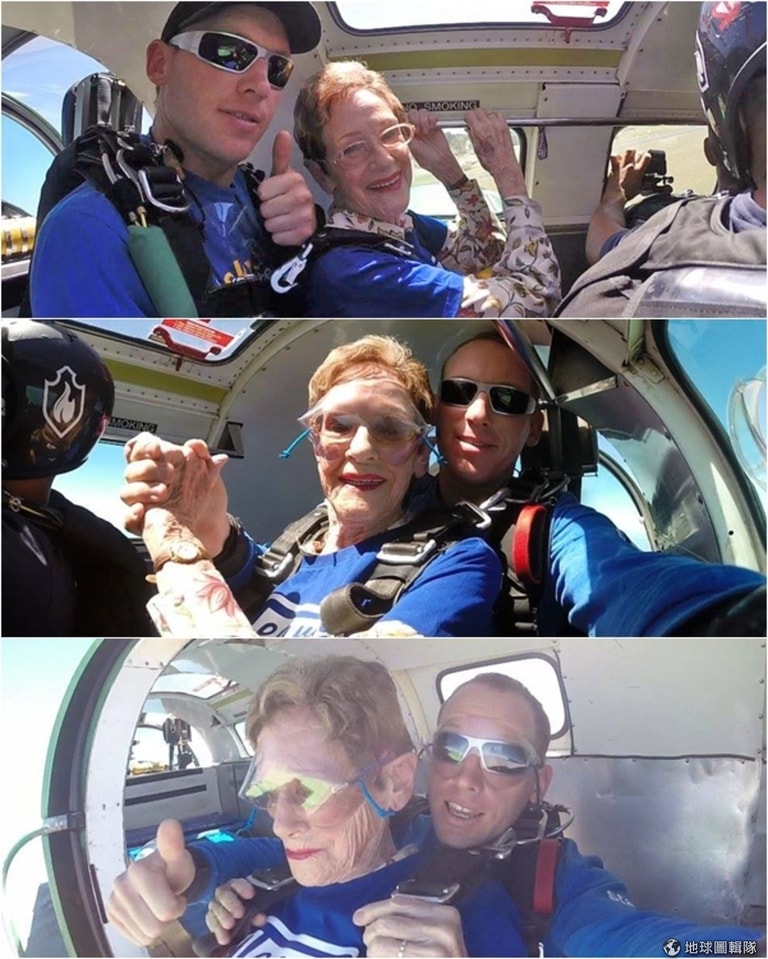 事實上,喬伊阿嬤高空跳傘,除了是她已經醞釀30年之久的計畫,在跳完之後,她也形容這次的體驗相當無與倫比。「尤其是當傘終於順利打開的時候,我還暗自慶幸順便感謝上天,」喬伊阿嬤打趣的說。甚至當她順利落地後,竟然脫口而出的是「讓我再玩一次!」