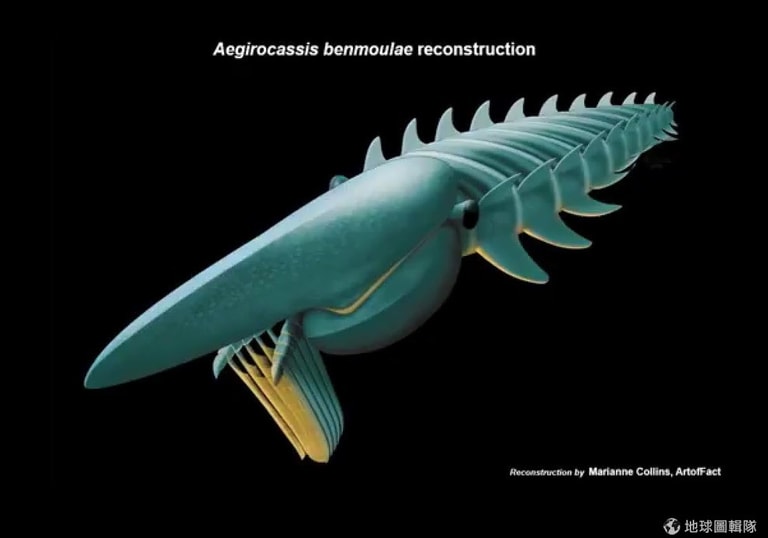 摩洛哥的科學家們發表他們在摩洛哥東南邊的大發現:距今 4.8億年且保存良好的大型節肢動物化石,發現的學者將它命名為「Aegirocassis benmoulae」,意指「帶著頭盔的海神‧本莫拉」。
