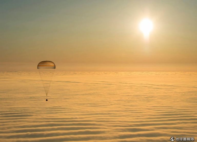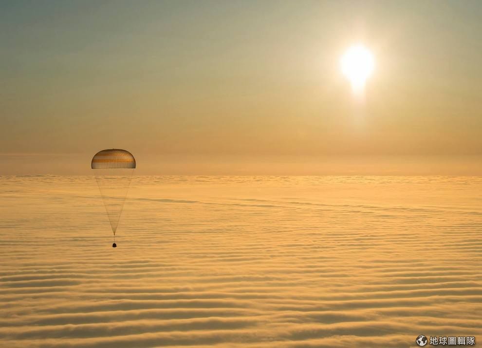 聯合號太空船(Soyuz TMA-14M)載著結束任務的太空人緩緩下降。報導指出,在國際太空站(International Space Station)待了 6個月的 2名俄羅斯籍和 1名美籍太空人 11號登上聯合號太空船,出發準備返回地球。NASA說,3名太空人 2014年9月26日離開地球,在太空待了 167天,期間旅行超過 1億1200萬公里。