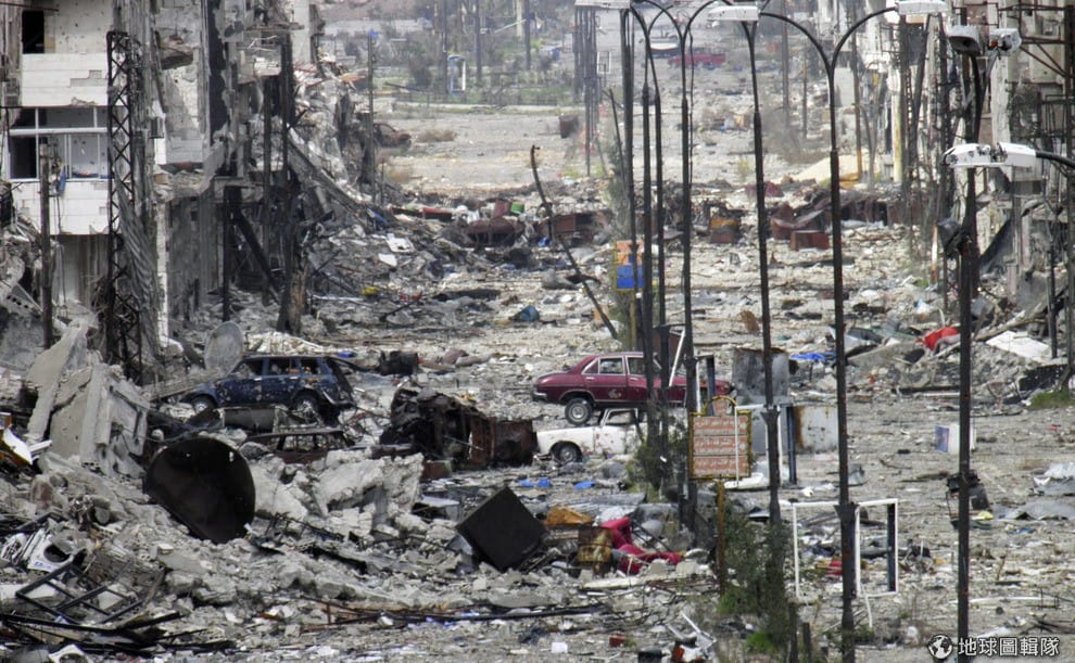 網友敘利亞大城原本的榮景都因為戰火摧殘而只剩斷垣殘壁。