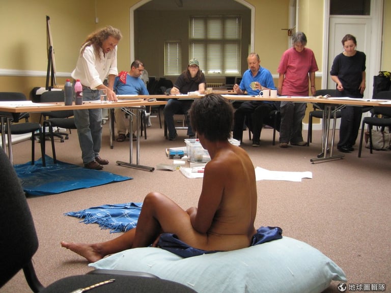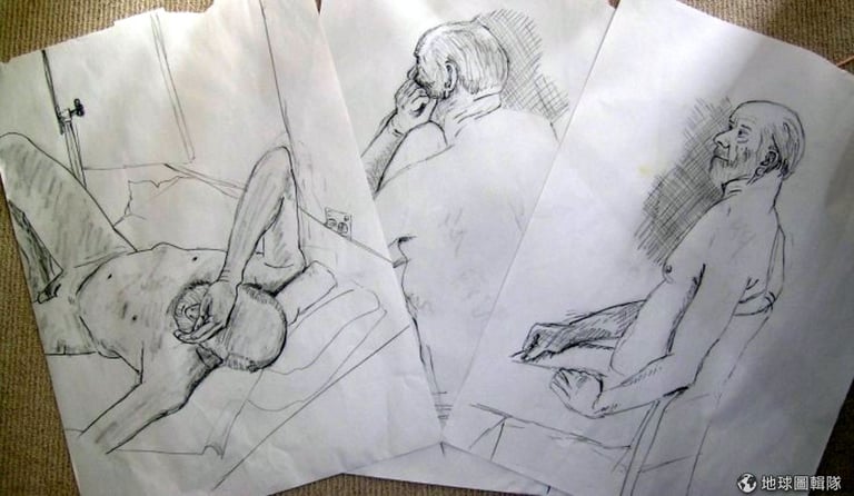 幸好,安察覺到我的害怕,到一旁安撫我。她趁休息時間對我解釋,人體模特兒的背景和外貌都不同,每位模特兒的體型不同,職業也不同,他可能是演員、學生、退休人士或是輸慘的金融家,他們都很樂意為了一小時 15英鎊(折台幣約 715元)的價錢解放自我。