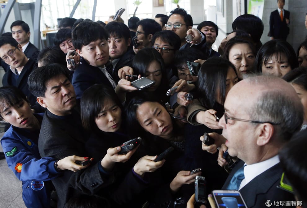 美國助理國務卿羅素(Daniel Russel)結束與南韓外交部高層的會議,照片中的羅素正在對記者表示,各國可以自己決定是不是要加入以中國為首的「亞洲基礎設施投資銀行」(簡稱亞投行)。