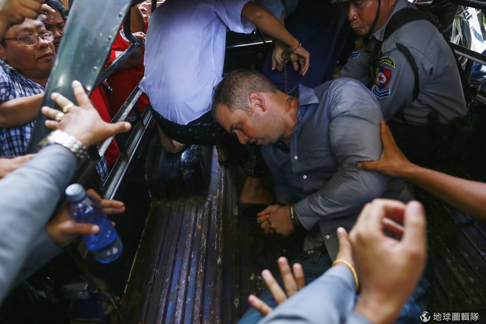 紐西蘭籍的酒吧經理布萊克伍德(Phil Blackwood)被押進警車裡。布萊克伍德為了促銷,發布了佛祖戴著耳機的海報,被認為是污辱宗教,判刑牢獄兩年半。酒吧的老闆圖瑞(Tun Thurein)、經理溫(Htut Ko Ko Lwin)也都被控告污辱宗教。