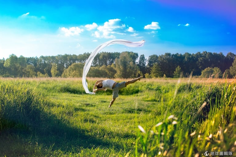 從照片中可以看到周楷優雅的動作,每個伸展、每個跳躍都展露出舞蹈的優美,表現出無重力停駐在半空中的奇幻感。就讓我們來欣賞周楷的作品吧!