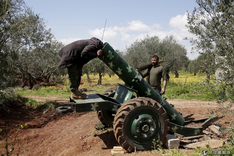 敘利亞的伊德利布市(Idlib)中,一名敘利亞反政府軍正把頭探進砲管裡。根據《路透社》報導,敘利亞反政府軍和基地組織(al Qaeda)組成的聯軍表示,他們在 24號時發動攻擊準備要拿下靠近高速公路的伊德利布市。