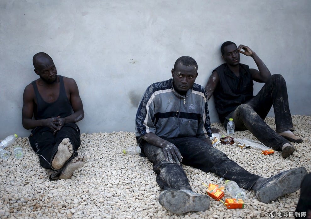非法移民坐在利比亞的黎波里的警察局裡。利比亞的警察抓到 96名非法移民,當時移民們搭上一艘船準備要度過地中海到義大利去。根據政府計畫書,義大利希望埃及、突尼西亞可以出更多力來幫忙搶救困在地中海的移民船,好把倖存下來的移民送回非洲而不是歐洲。