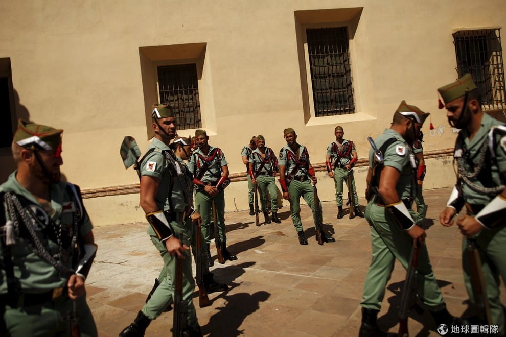 在南部的馬拉加省,軍人們在小禮拜堂外交接。時值聖周,即復活節的前一周,各地信徒紛紛參與天主教紀念活動,西班牙也加派維安人員維護現場秩序。