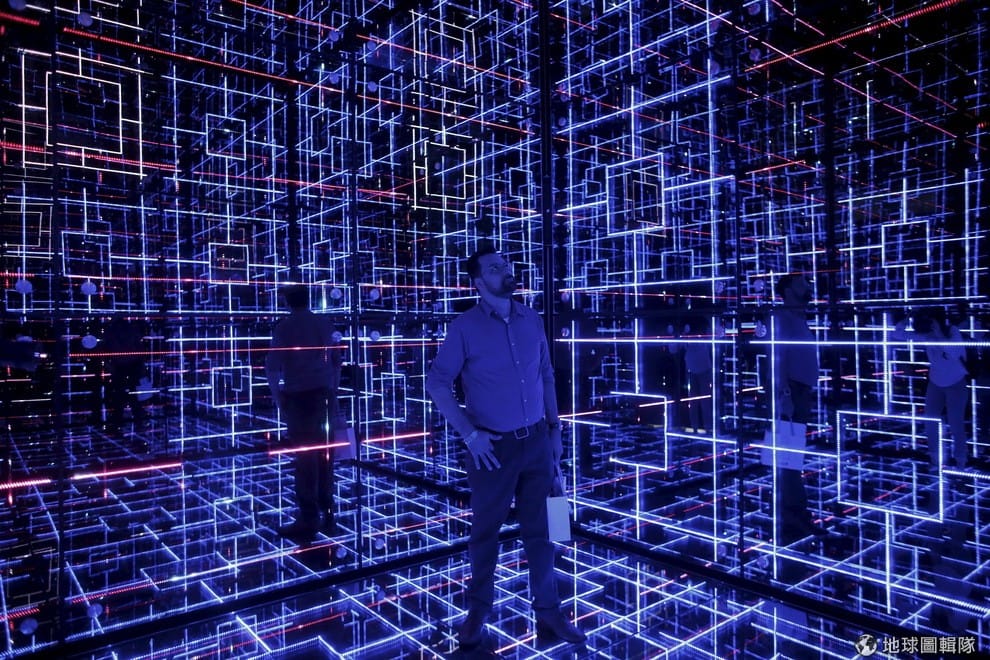 聖戈班(Saint-Gobain)建材公司為了紀念成立 350周年,他們特別在聖保羅籌辦名為「喔!未來感」的特展。一名男子站在特殊打造的房間內享受未來的感覺。