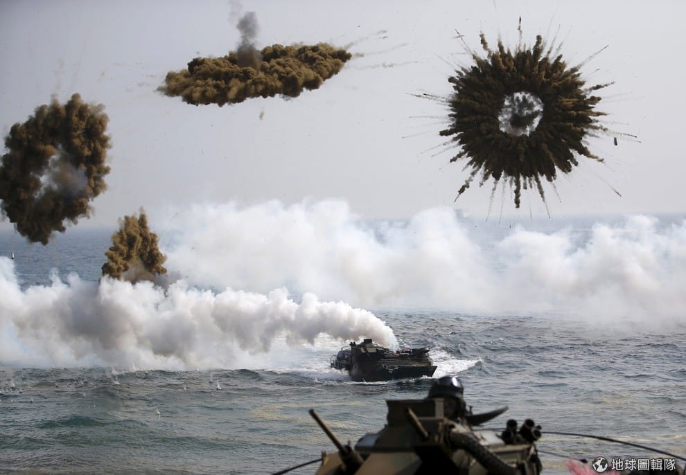南韓海軍在與美軍聯合軍演時,派出兩棲攻擊艦艇投放煙霧彈。美韓聯合軍演是兩國年度軍事訓練「雛鷹行動」的盛事,將從 3月2日持續到 4月24日。