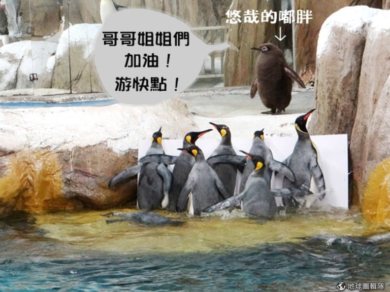 原來動物園早年購入的國王企鵝年紀都已經 20歲上下,喜歡下水游泳的只剩少數幾隻「耆老」,而在動物園出生的年輕企鵝,因為沒有被老「鳥」帶著游泳的經驗,加上待在岸上就能吃好睡好,根本不會想下水游泳。