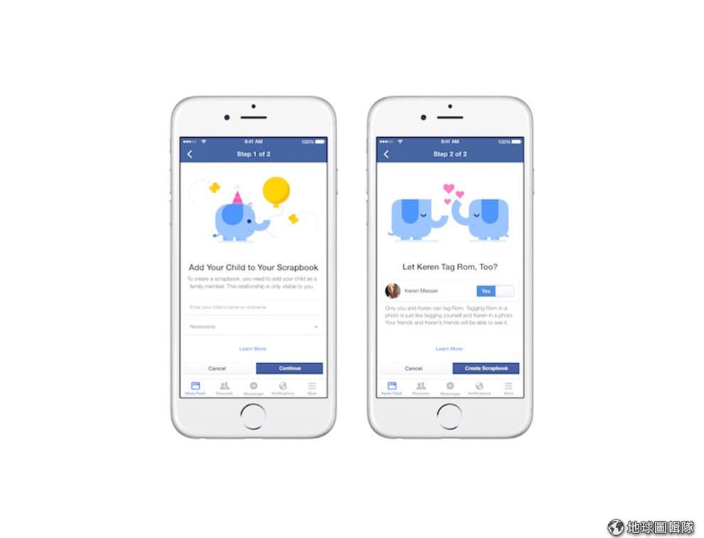 考慮到這些意見,Facebook 新推出 Scrapbook 功能,當您在 Facebook 上整理孩子的照片時,為其添加特殊的 tag,照片就能自動加入為孩子建立的 Scrapbook 裡。這項功能今日向美國用戶開放,在桌面端和行動端的 iOS、Android App 都能使用,台灣地區則還未能使用。