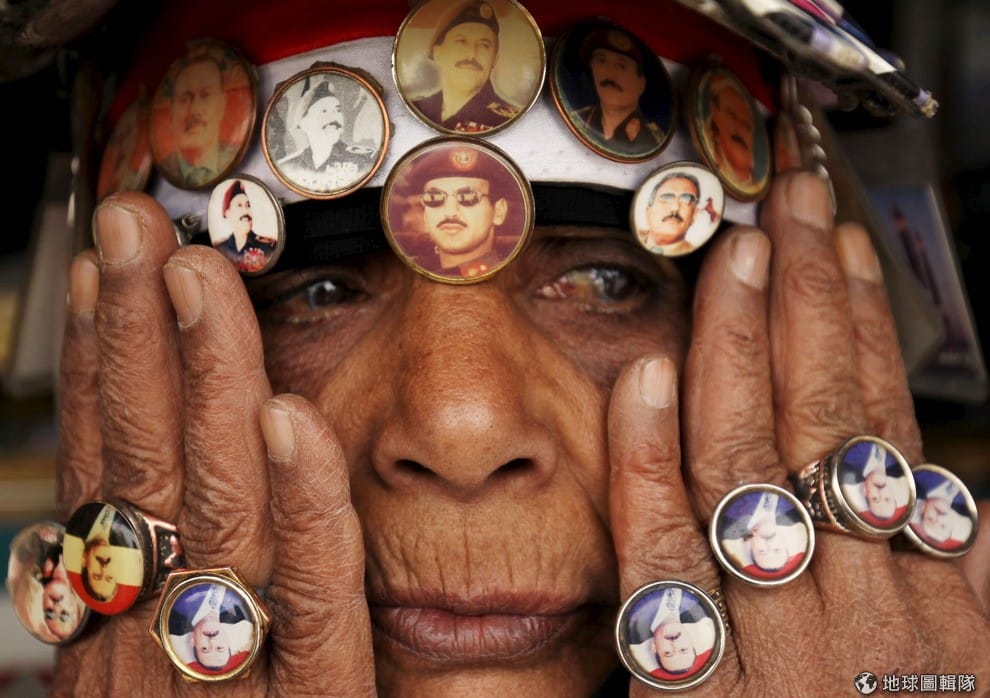 一名支持前總統沙雷(Ali Abdullah Saleh)的女子,頭上帶著沙雷與沙雷之子阿默德(Ahmed Ali Abdullah Saleh)照片做成的別針,手上則掛著戒指,上街抗議阿拉伯盟軍空襲葉門。3號,阿拉伯盟軍提供政府軍武器與醫療資源和胡西組織作戰,終於讓胡西組織從葉門南部的亞丁市中心撤退。