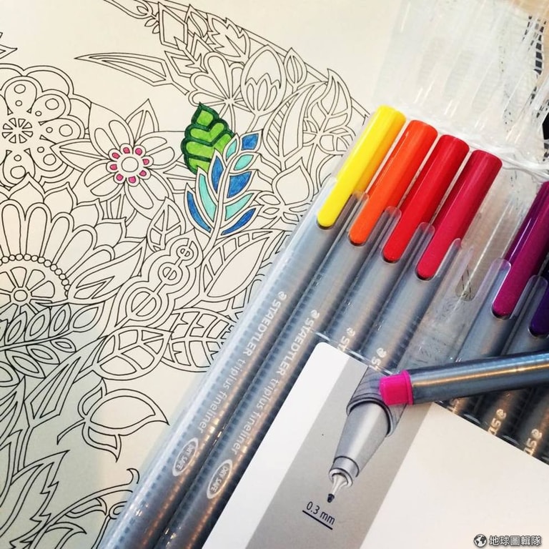 「我們在 2012年時推出了第一本,叫做《給大人的創意著色本》(暫譯,Creative Colouring for Grown-Ups),銷量很好,很快就再版,但一直到去年 6月才真正因為藝術治療的風行讓銷量突飛猛進。我們從紓壓的角度行銷著色本,讓大人可以享受他們覺得非常孩子氣的樂趣。」