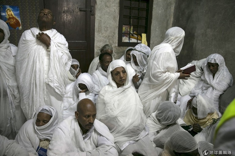 參加聖火祭典的基督徒們,全換上白色裝束靜心等待儀式開始。