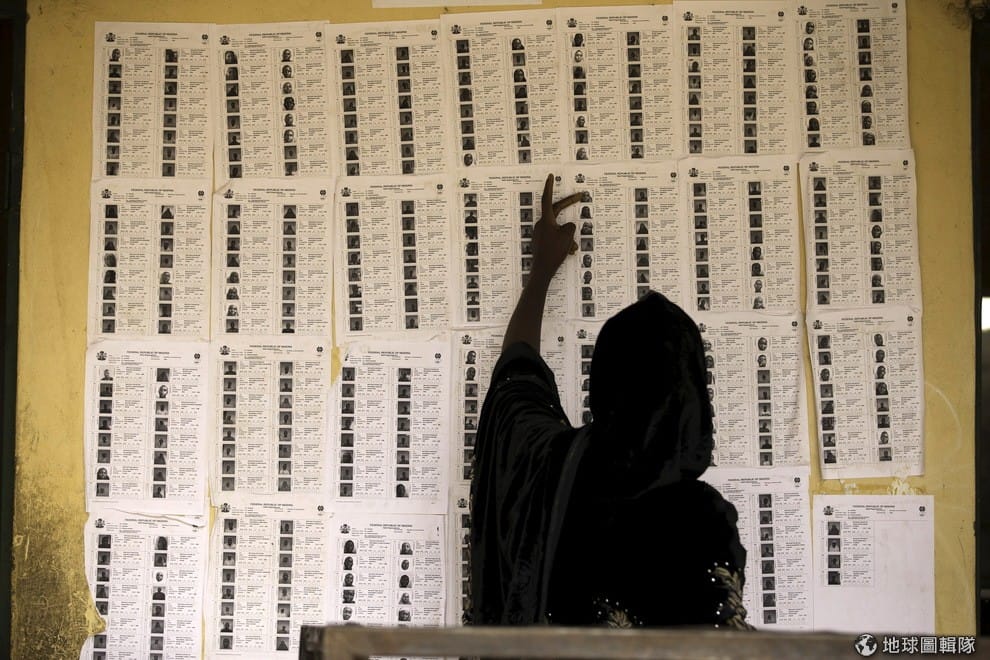 奈及利亞正舉行州長大選,照片中的民眾正在專心看著牆上的選民名單。報導指出,兩週前剛結束總統大選的奈及利亞,首度出現政黨輪替,日前進行的 36州州長選舉,將決定誰能成為影響力數一數二的政治人物,因為奈國州長掌控的預算比小型非洲國家還多,且握有可左右總統選票的影響力。