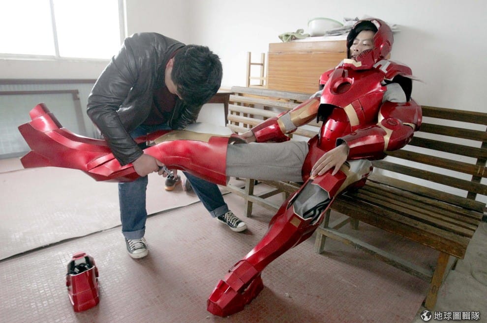 江蘇省當地, 27歲的陳辰(音譯,Cheng Chen)正忙著替外甥穿上他花了 500人民幣(約台幣 2,536元)買的鋼鐵人盔甲組,盔甲是由塑膠和LED燈製成,重量約 4公斤。