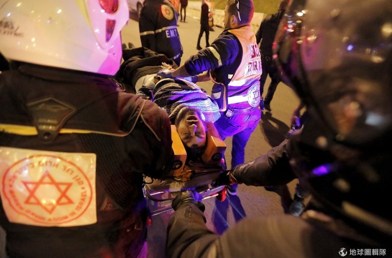 16號這天,耶路撒冷區傳出蓄意飛車撞人的事故,一名巴勒斯坦人開車撞向公車站,造成一名以色列人身亡,照片中受傷的民眾就是當時開車的巴勒斯坦人,事件過後,以色列警方將他逮捕訊問。